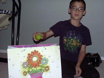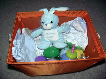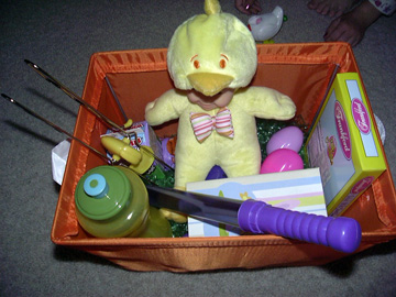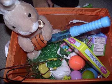 and a grab bag with the eggs from the Easter Bunny was placed